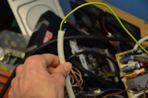 Benedikt hat dafür das Kabel zuerst abisoliert, die Original-Länge des Drahtes von mehr als 86 cm aber zunächst beibehalten, da später noch Platz zum Löten sein sollte.